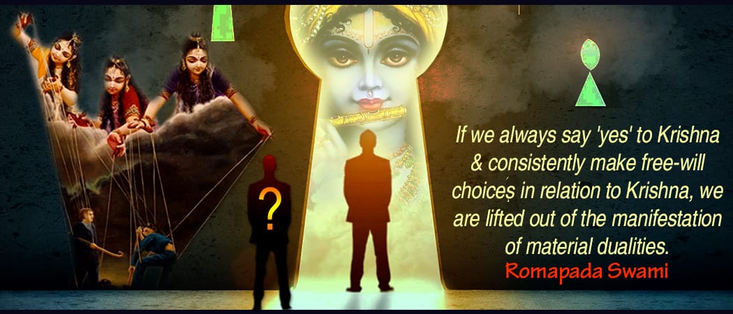 If we always say ‘yes’ to Krishna and consistently make free-will choices in relation to Krishna, we are lifted out of the manifestation of material dualities.