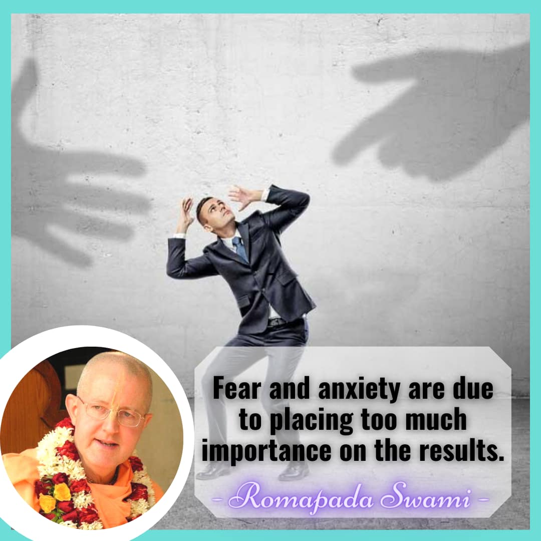 A materialistic way of life is filled with anxiety and fear. The only way to avoid this is to maintain a spiritually conscious lifestyle. Fear and anxiety are due to placing too much importance on the results.
