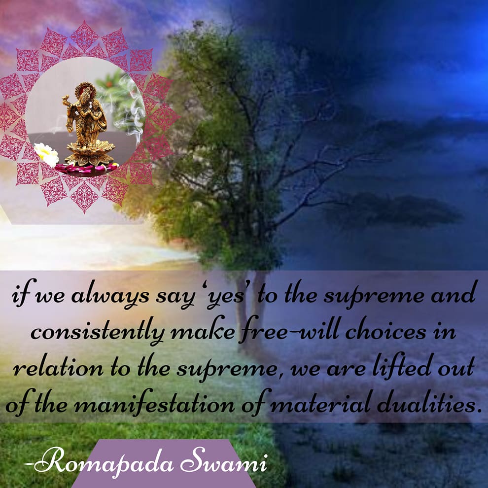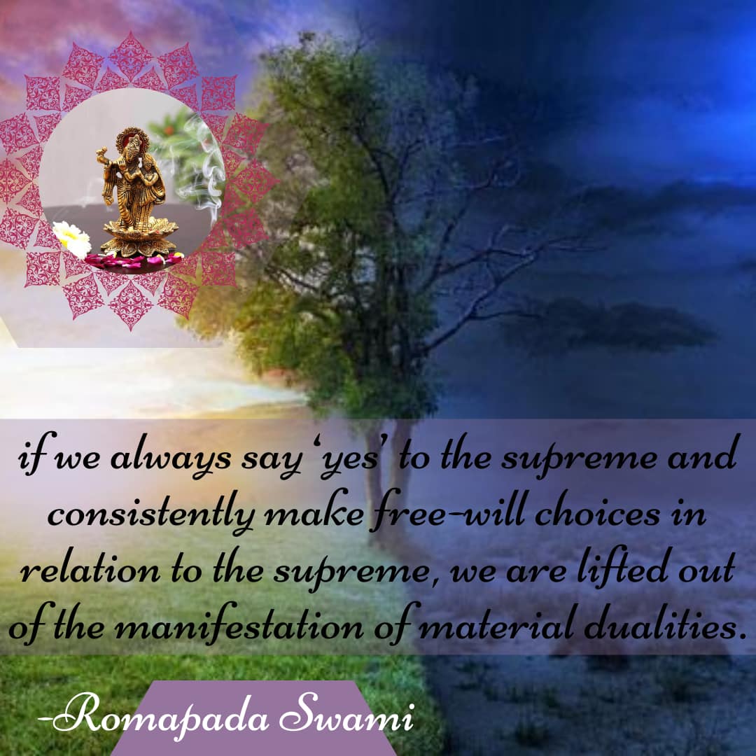 If we always say ‘yes’ to the supreme and consistently make free-will choices in relation to the supreme, we are lifted out of the manifestation of material dualities.