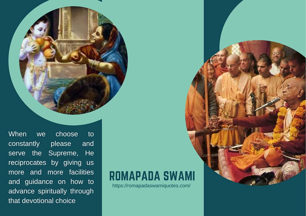When we choose to constantly please and serve the Supreme, He reciprocates by giving us more and more facilities and guidance how to advance spiritually through that devotional choice