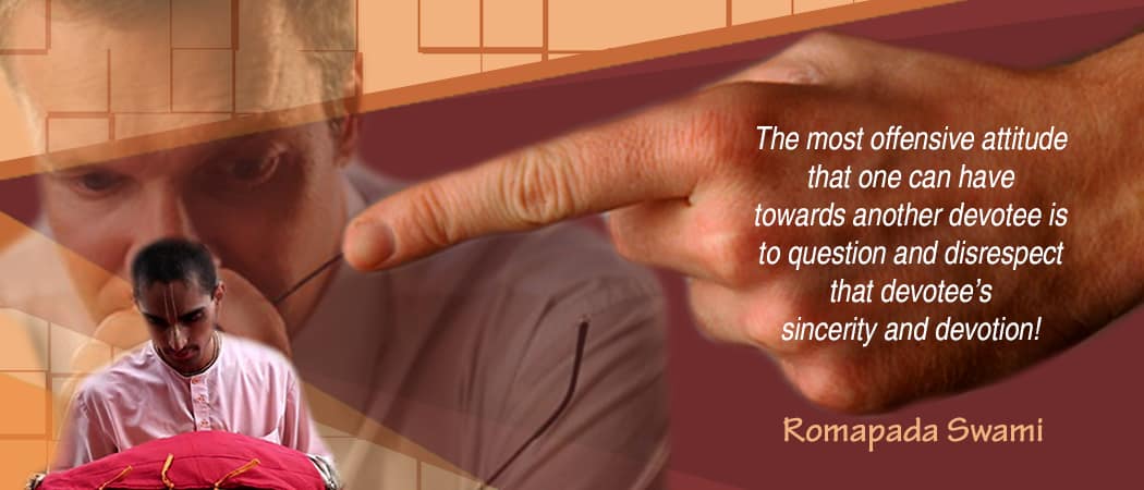 The most offensive attitude that one can have towards another devotee is to question and disrespect that devotee’s sincerity and devotion!