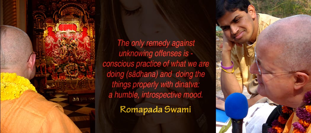 The only remedy against unknowing offenses is – conscious practice of what we are doing (sädhana) and doing the things properly with dinatva: a humble, introspective mood.