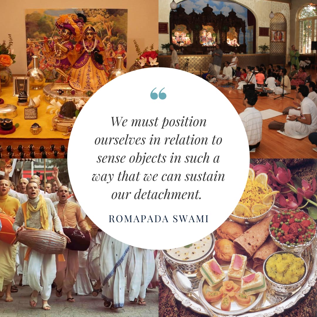 We must position ourselves in relation to sense objects in such a way that we can sustain our detachment — while we seek to incrementally move the fulcrum of life towards the position where there is ever-increasingly less involvement with matter in an enjoying spirit, instead towards ever-increasing bhakti.