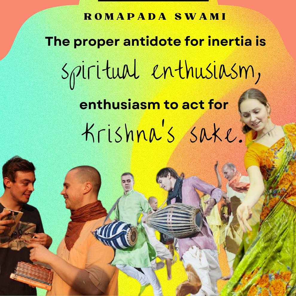 The proper antidote for inertia is spiritual enthusiasm, enthusiasm to act for Krishna’s sake