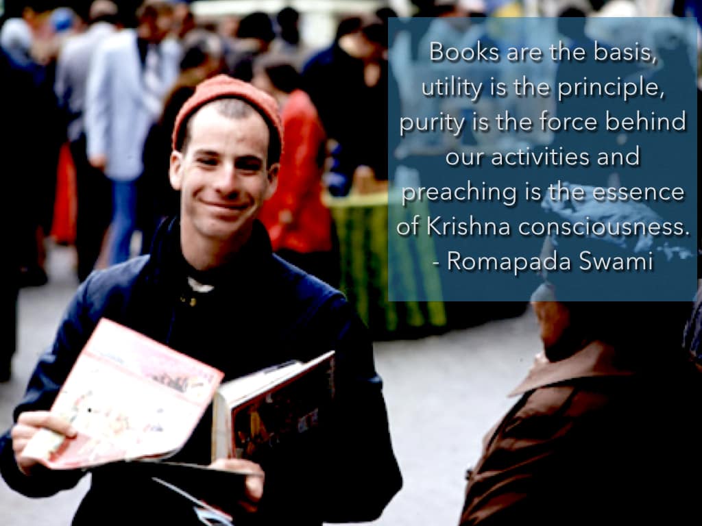 Books are the basis, utility is the principle, purity is the force behind our activities and preaching is the essence of Krishna consciousness.