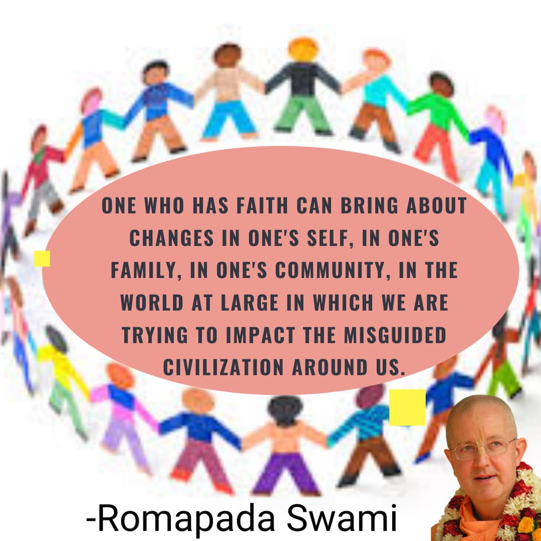 One who has faith can bring about changes in one’s self, in one’s family, in one’s community, in the world at large in which we are trying to impact the misguided civilization around us.