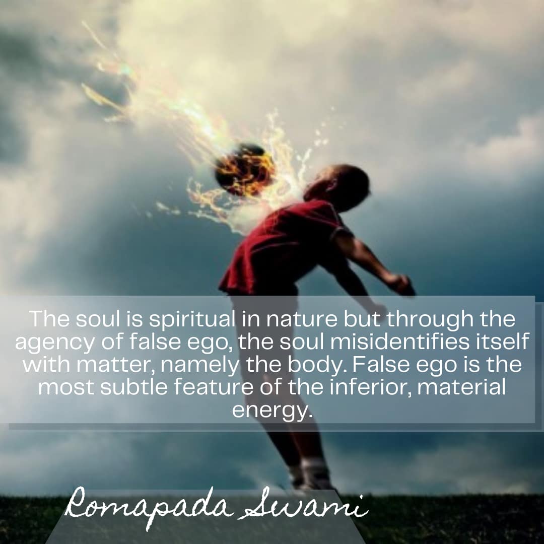 Through the agency of false ego one identifies with the covering (the body) and forgets his real position of being the servant of Lord Krishna. Just like at night when we have a dream, we forget all our daytime activities and sense of self. And when we wake up in the morning we forget the night dream identity. Similarly because of the covering of false ego, one identifies oneself with the body and therefore is subjected to repeated births and deaths taking various forms of life in different species