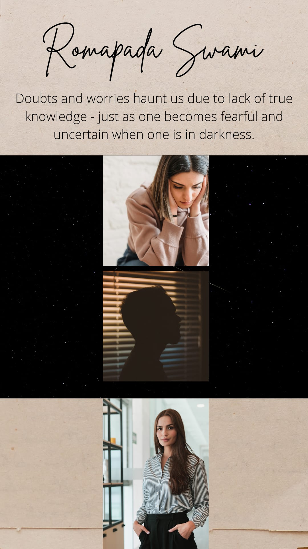 Doubts and worries haunt us due to lack of true knowledge – just as one becomes fearful and uncertain when one is in darkness.