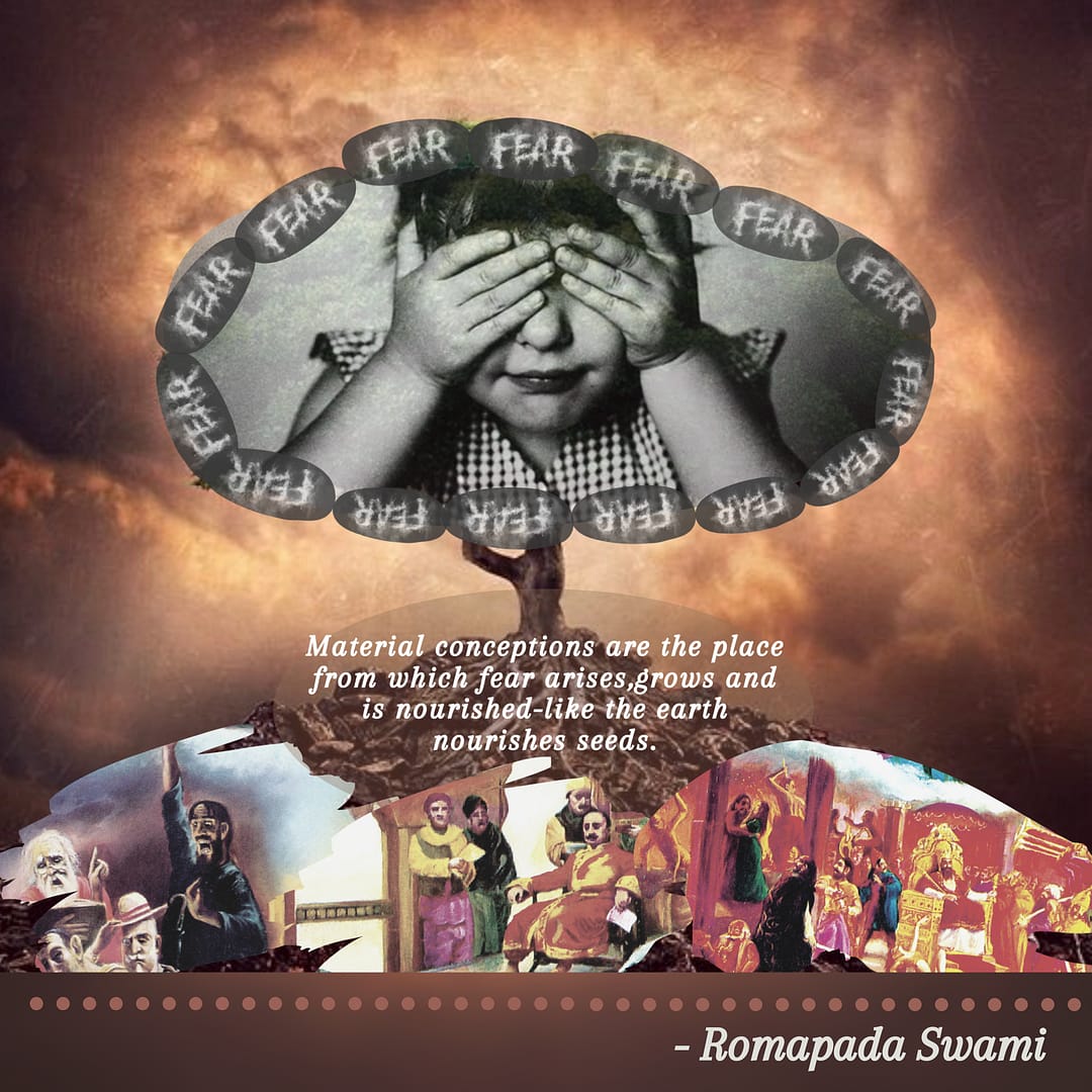 Fear thrives in an environment ruled by false ego and sense gratification. When the understanding of the Higher Power of the Universe is gained, then fear is pulled from our hearts like weeds are pulled from a garden.