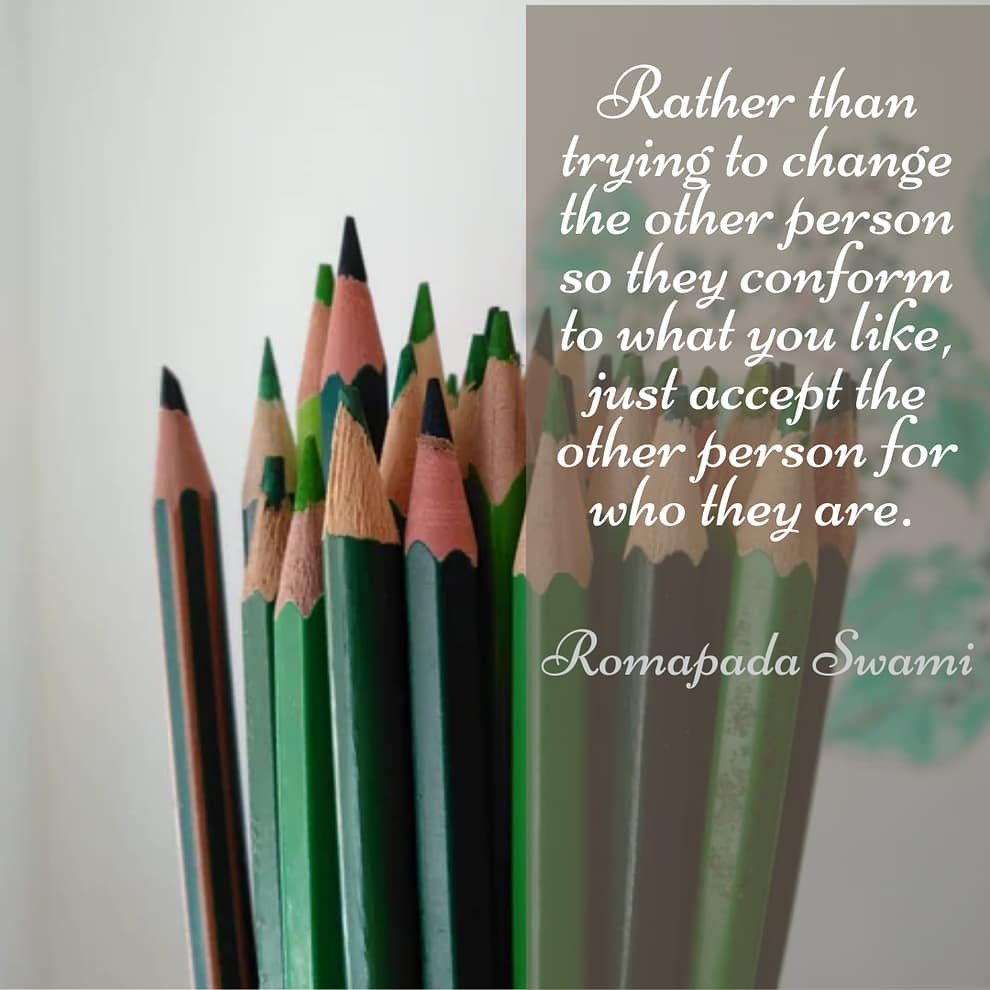 There is a major factor of acceptance of another person wherever they are as part of a loving relationship. Rather than trying to change the other person so they conform to what you like, just accept the other person for who they are. And vice versa. Then you have a loving relationship.