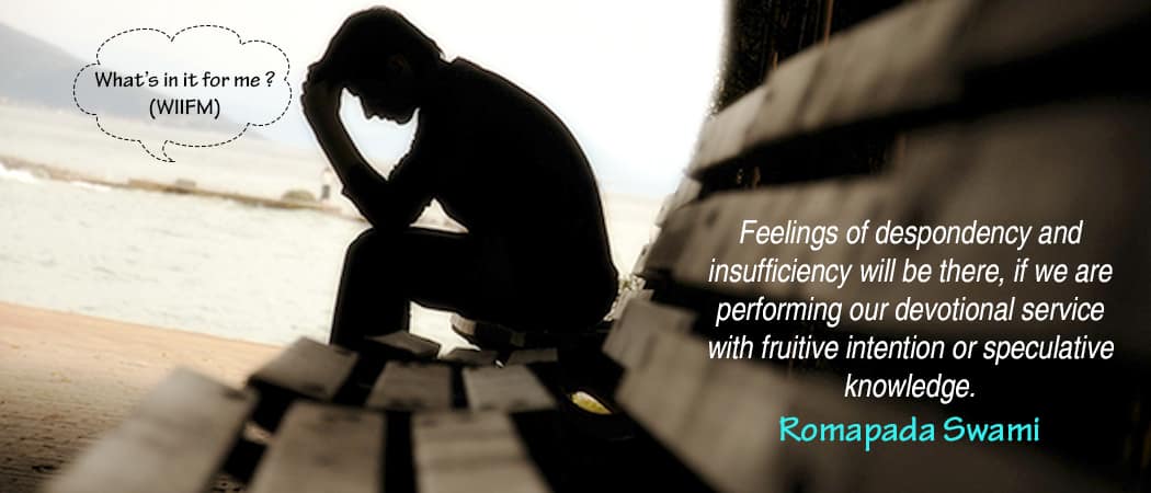 Feelings of despondency and insufficiency will be there, if we are performing our devotional service with fruitive intention or speculative knowledge.