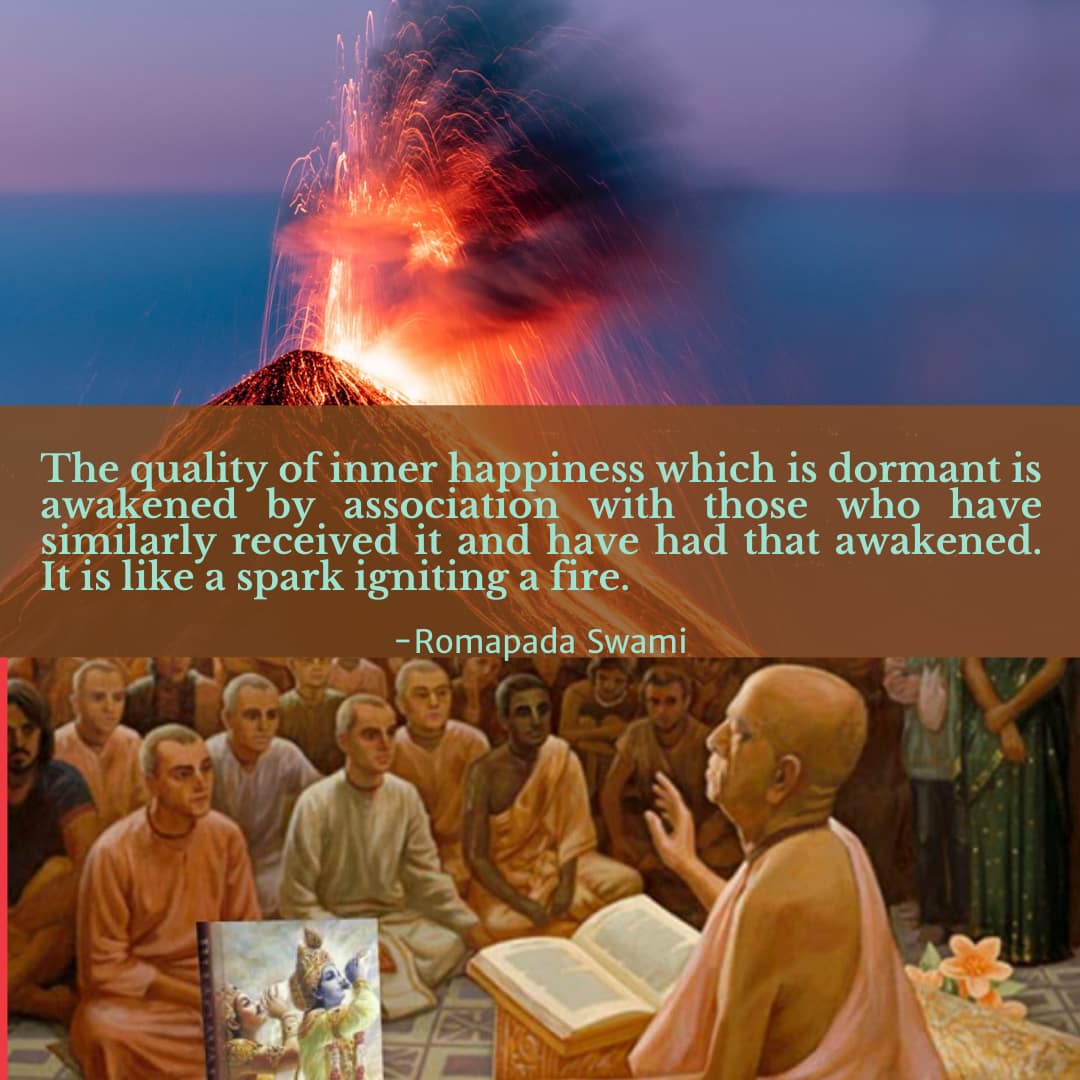 The quality of inner happiness which is dormant is awakened by association with those who have similarly received it and have had that awakened. It is like a spark igniting a fire.