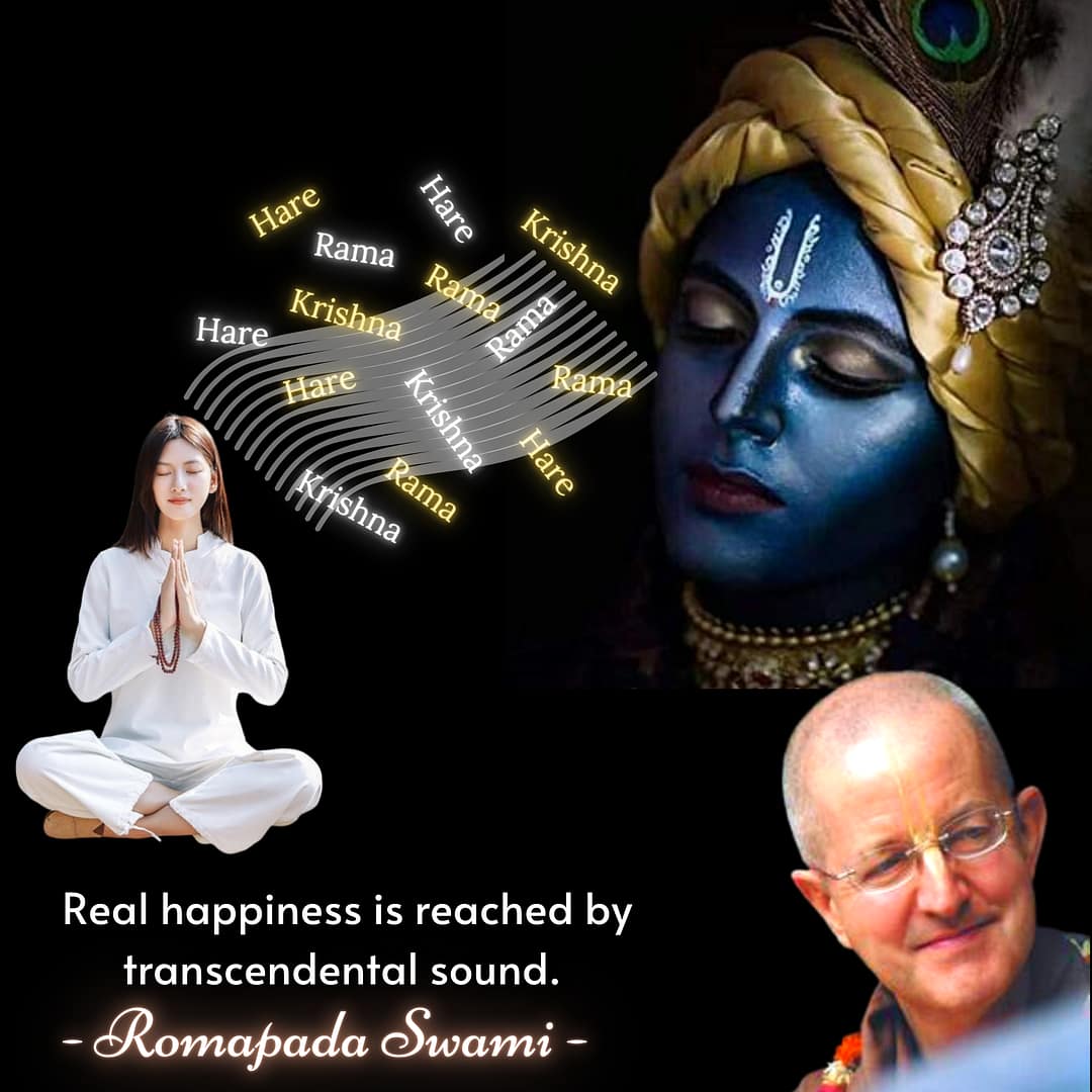 Real happiness is reached by transcendental sound. There are all kinds of other sounds – the sound of rap music; the sound when you are logging in to dial-up networking; so many sounds. Those don’t awaken the happiness of the soul. There are sounds in material goodness happiness – the sounds of the wind going through the trees; the sounds of nature. That is conducive to the quality of happiness in goodness. There are sounds in passion, and others in ignorance. But happiness of the soul comes from transcendental sound.