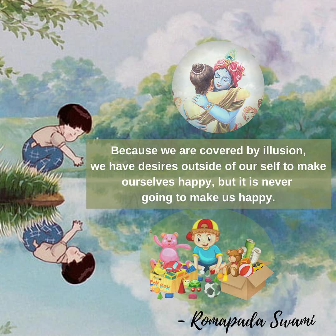 Because we are covered by illusion, we have desires outside of our-self to make ourselves happy, but it is never going to make us happy. It is just illusion, and we are busy chasing after illusion. So we suffer instead of enjoy, which is opposite of what we wanted.