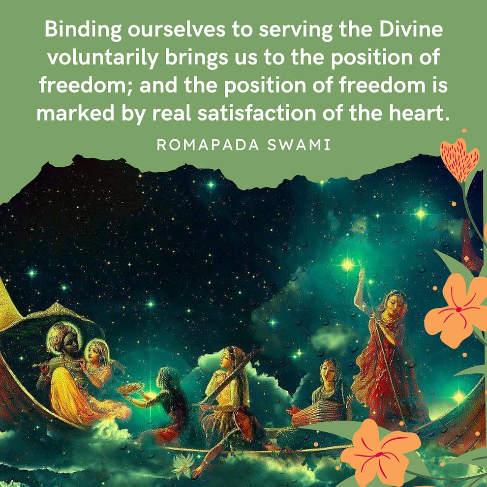 Binding ourselves to serving the Divine voluntarily brings us to the position of freedom; and the position of freedom is marked by real satisfaction of the heart.