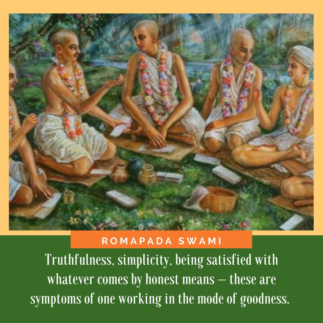 Truthfulness, simplicity, being satisfied with whatever comes by honest means — these are symptoms of one working in the mode of goodness.