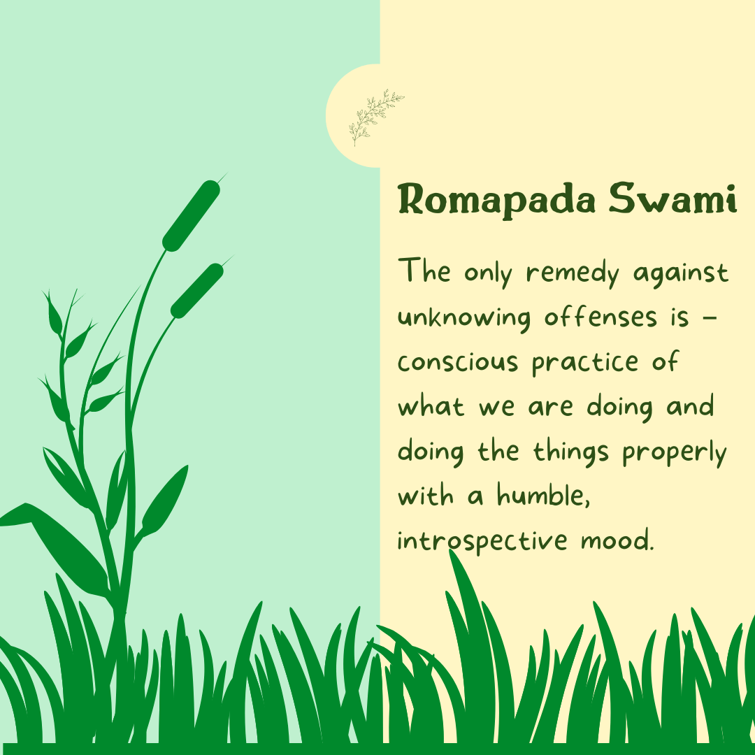 The only remedy against unknowing offenses is – conscious practice of what we are doing and doing the things properly with a humble, introspective mood.