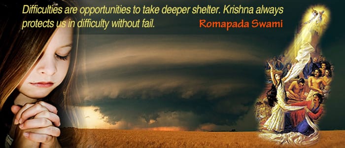 difficulties are opportunities to take deeper shelter. Krishna always protects us in difficulty without fail – romapada swami