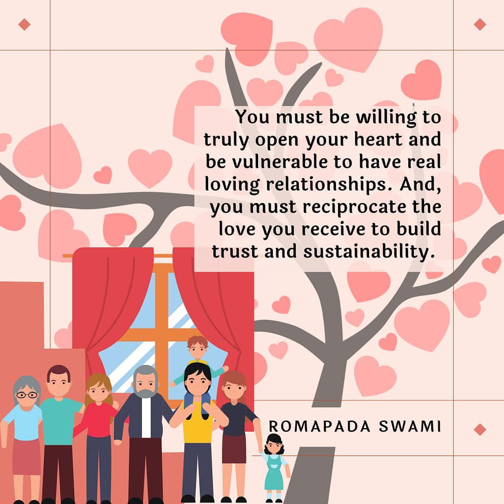 You must be willing to truly open your heart and be vulnerable to have real loving relationships. And, you must reciprocate the love you receive to build trust and sustainability.