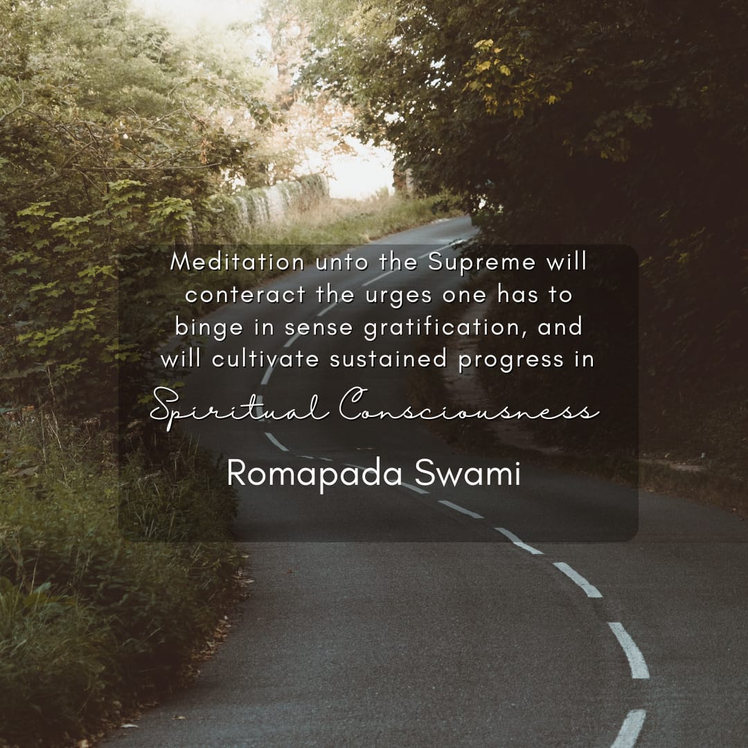 Meditation unto the Supreme will counteract the urges one has to binge in sense gratification, and will cultivate sustained progress in Spiritual Consciousness