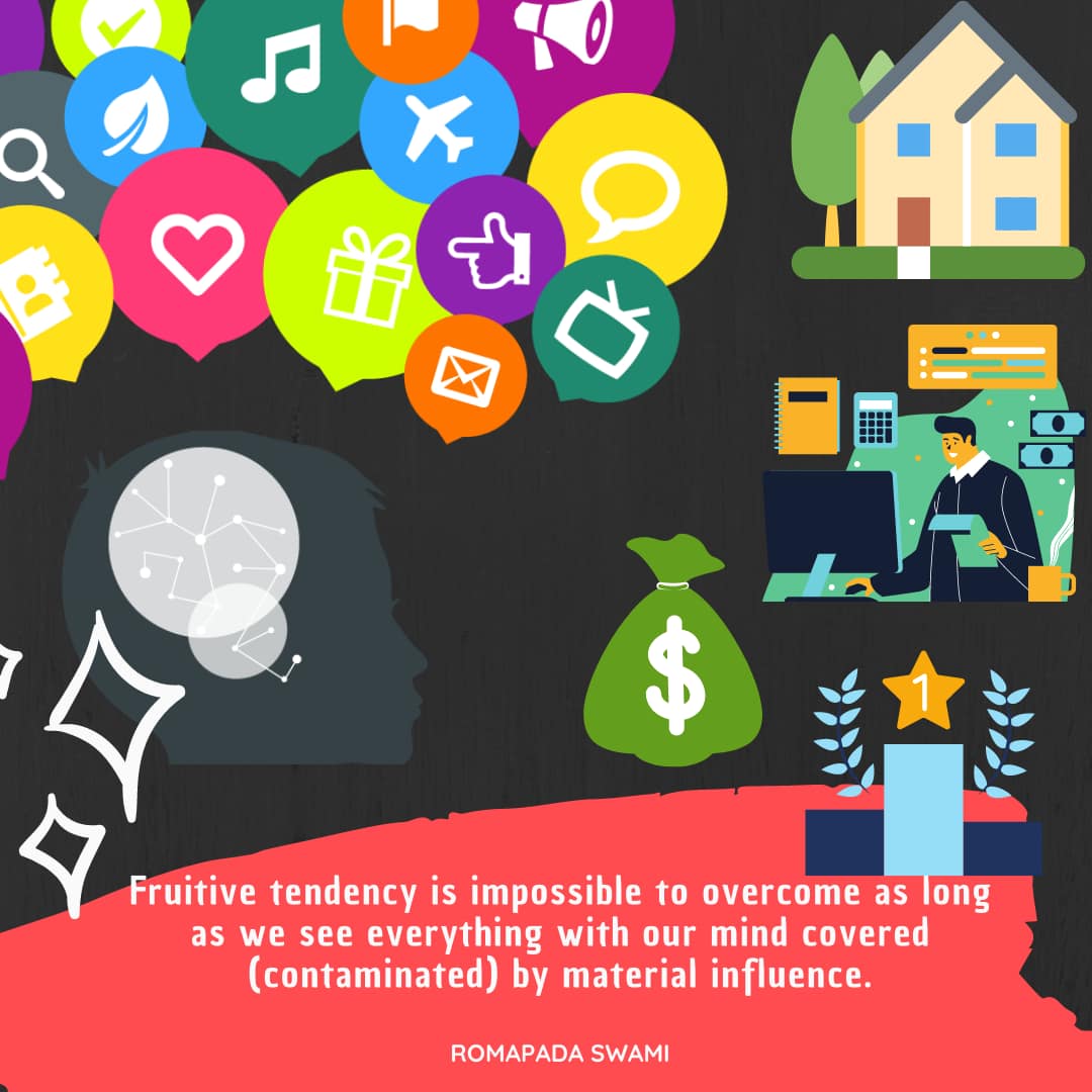 Fruitive tendency is impossible to overcome as long as we see everything with our mind covered (contaminated) by material influence.