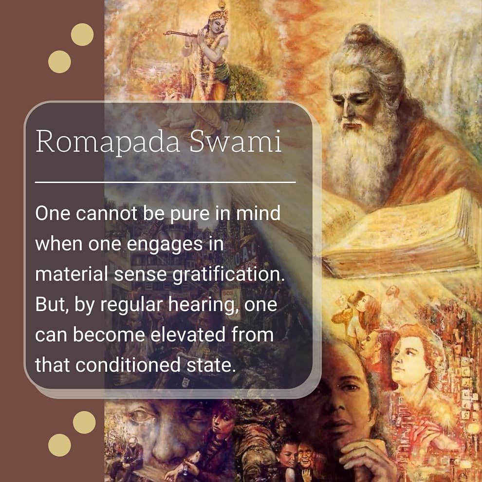 One cannot be pure in mind when one engages in material sense gratification. But, by regular hearing, one can become elevated from that conditioned state.
