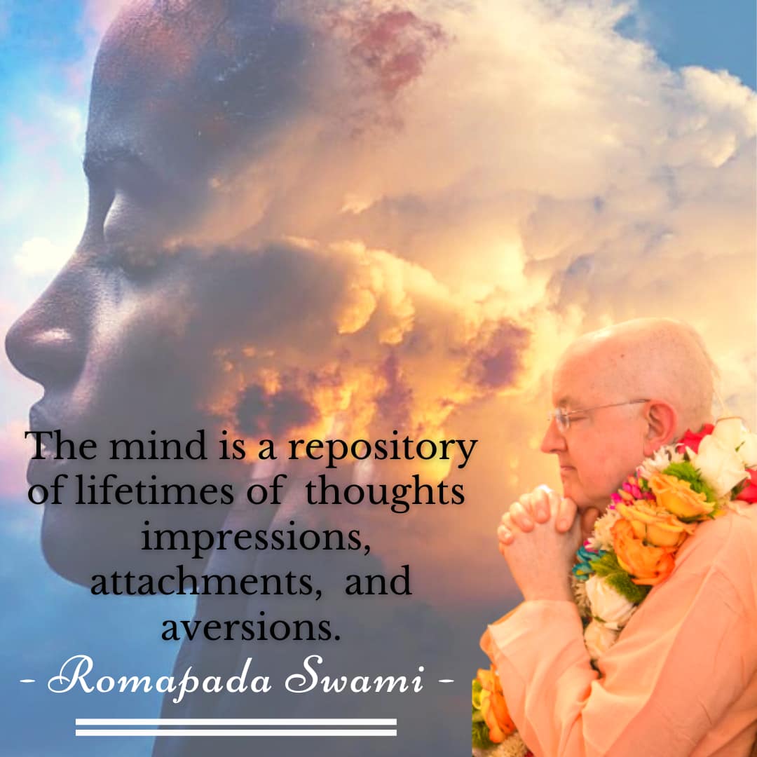 The mind is a repository of lifetimes of thoughts, impressions, attachments and aversions. It is also greatly and very subtly affected by our immediate circumstances and surroundings. The food we eat, the company we keep, our daily activities, the sounds and sights we are exposed to, etc., have a great bearing upon our mental state.