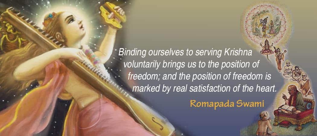 Binding ourselves to serving Krishna voluntarily brings us to the position of freedom; and the position of freedom is marked by real satisfaction of the heart. – Romapada Swami