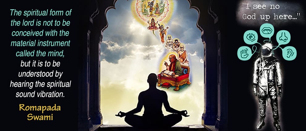 The spiritual form of the lord is not to be conceived with the material instrument called the mind, but it is to be understood by hearing the spiritual sound vibration.