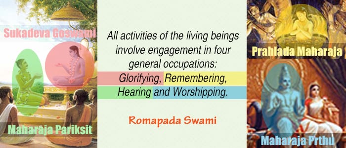 All activities of the living beings involve engagement in four general occupations: Glorifying, Remembering, Hearing and Worshipping – Romapada Swami