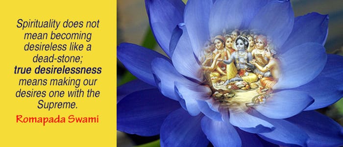 At my neophyte stage, how I can be sure that I am making my desires one with the Supreme is by following the directions given to me by my spiritual authorities. From Prabhupada’s example, I can understand that the directions we receive even in our beginning stages of Krishna Consciousness need to be followed at later stages also.