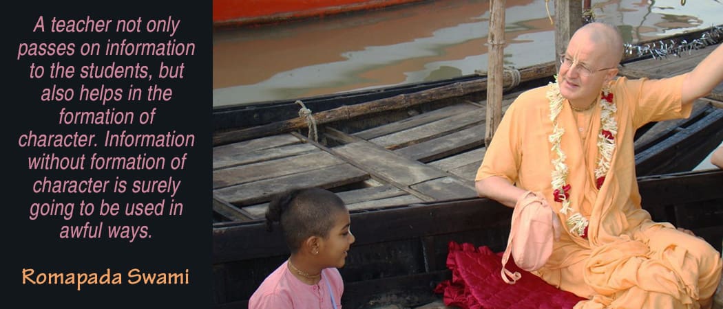A teacher not only passes on information to the students, but also helps in the formation of character. Information without formation of character is surely going to be used in awful ways. – Romapada Swami