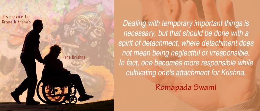 Dealing with temporary important things is necessary, but that should be done with a spirit of detachment, where detachment does not mean being neglectful or irresponsible. In fact, one becomes more responsible while cultivating one’s attachment for Krishna.