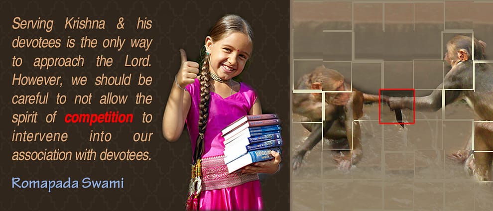 Serving Krishna and his devotees is the only way to approach the Lord. Howvever, we should be careful to not allow the spirit of competition to intervene into our association with devotees.